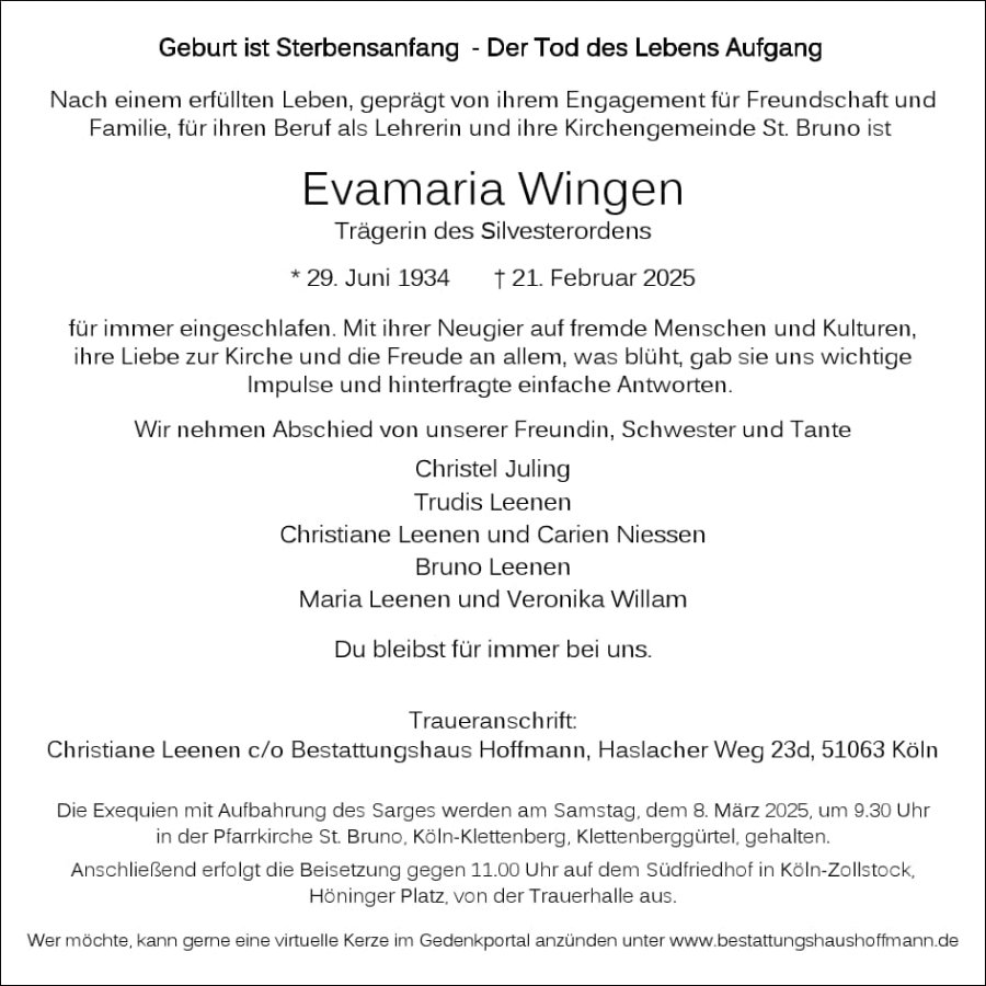 gestorben am 21. Februar 2025 in Köln